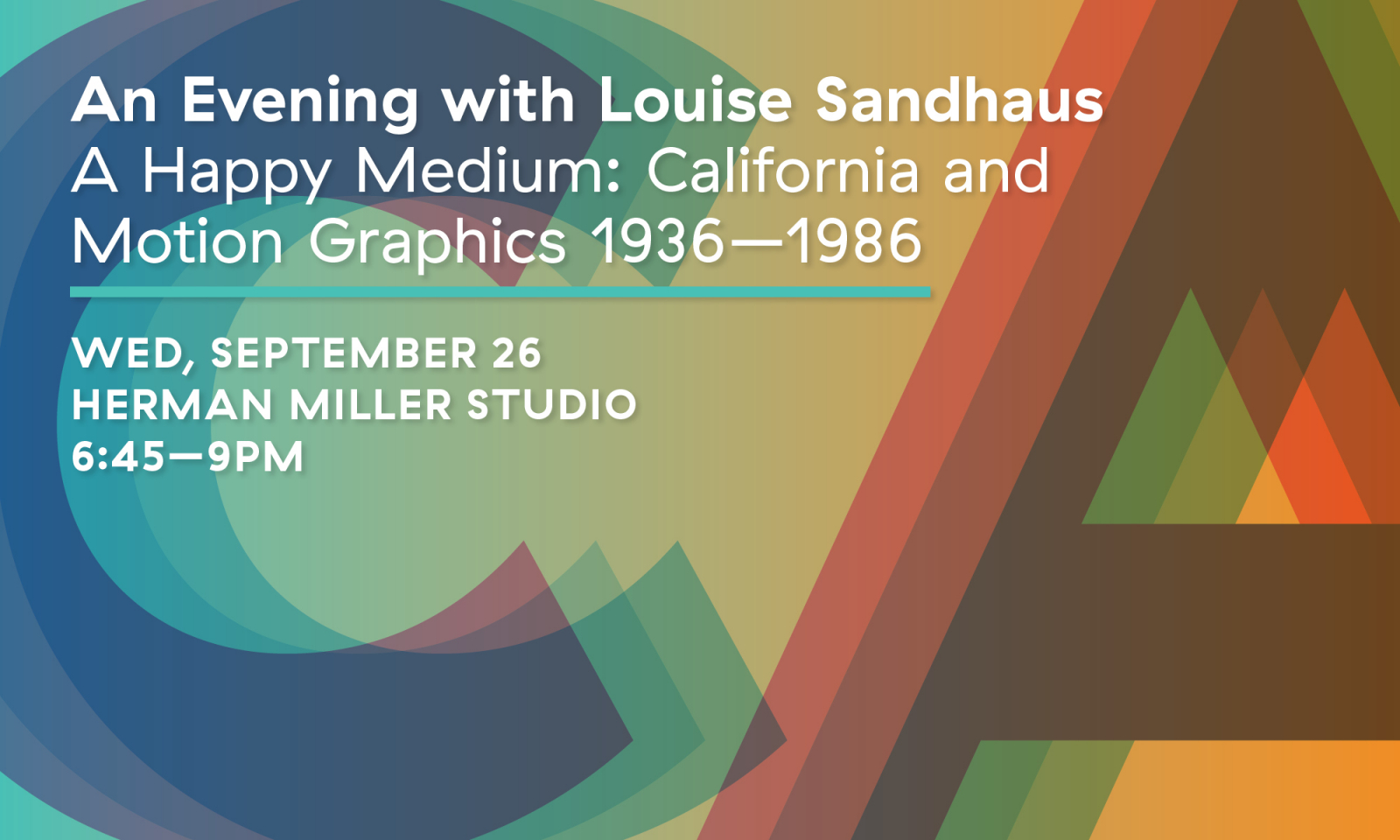 Join us later this month as we celebrate California design history. Who better to join us than Louise Sandhaus, chronicler of the golden state’s rich design history. For this special evening, she’ll share a visual extravaganza of design’s hefty contribution to motion graphics—from early abstract films to film/tv titles, commercials, concert light shows, music videos, and even video games. You’ll see the familiar along with the little known and unknown, but all of it eye-popping! Regardless of your own profession or stage of your career, you’ll be leaving inspired and proud to be a part of this buoyant creative community.